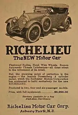 - ↑ a b B. R. Kimes, H. A. Clark: Standard Catalog of American Cars, 1805–1942. 1996, S. 1289 (Richelieu).