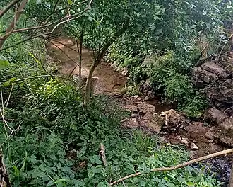 Südlich von Laub und nur wenig nördlich von Eulenhof gabelt sich der Bach. Ein meist entlang von Feldwegen laufender linker Grabenabzweig fließt zunächst südwärts am Eulenhof vorbei und dann zwischen dem Ostrand des Weilerholzes und im Westen des Wemdinger Rieds; dann wechselt er auf einen südwestlichen Grabenlauf, der über Rodelbach und Altwasser in die Wörnitz entwässert.