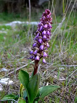 - Riesenknabenkraut (Himantoglossum robertianum (Loisel.) P.Delforge, Syn.: Barlia robertiana (Loisel.) Greuter, Orchis robertiana Loisel.): Sie kommt im Mittelmeerraum vor.[3]