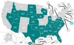 Bundesstaaten mit Right-to-work-Gesetzen sind:[7]