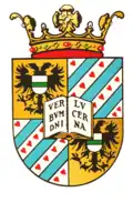 Siegel und Wappen der Universität wurden 1615 von den Landständen Groningens bestätigt. Es besteht aus einem geviertelten Schild, welches das Wappen der historischen Landschaft Ommelanden (Friesische Seeblätter) und der namensgebenden Stadt Groningen (zweiköpfiger Reichsadler) beinhaltet, wobei der ursprünglich einköpfige Adler des Groeninger Stadtwappens sich auf den früheren Status Groningens als (freie) Reichsstadt bezieht.[10]