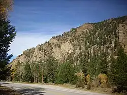 - Der Loch-Bà-Ring-Dyke auf der Isle of Mull in Schottland ist ein klassisches Beispiel für einen gut geformten Ring-Dyke.[12] Es hat eine ovale Form und sein Durchmesser beträgt etwa 5,8 km mal 8,5 km. Die Breite des Dykes variiert im gesamten Profil, mit einer maximalen Breite von etwa 300 Metern. Die Zusammensetzung variiert von Rhyolith bis Felsit, mit Einsprenglingen aus Alkalifeldspat und mafischen Mineralien.[13]