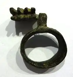 Seit dem 2. Jahrhundert v. Chr. gab es unter anderem auch goldene Ringe in Form zweier ineinander verschränkter Hände.[7] Nach Livius wurden goldene Ringe in großer Zahl auf den Schlachtfeldern Süditaliens gefunden, was man damit erklärt, dass es sich um Eheringe gehandelt haben muss. Seine sakrale Bedeutung in der christlichen Kirche hat der Ehering spätestens seit Papst Nikolaus I. (um 850). Seit dem 13. Jahrhundert gehört der Ring fest zum kirchlichen Trauritus.