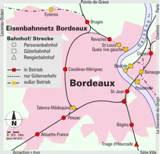 ![]() Streckennetz rund um die Stadt Bordeaux | |||||||||||||||||||||||||||||||||||||||||||||||||||||||||||||||||||||||||||||||||||||||||||||||||||||||||||||||||||||