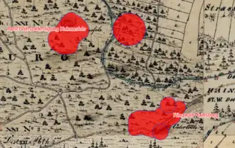 Lageplan des Ringwalls Hainsburg und der Abschnittsbefestigung Kalmusfelsauf dem Urkataster von Bayern | ||