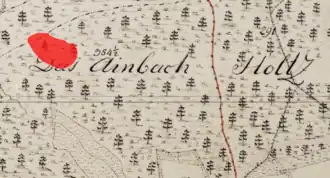 Lageplan des Ringwalls Römerschanze (Schönau)auf dem Urkataster von Bayern