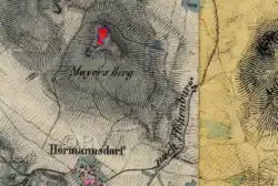 Auf der buckeligen Bergkuppe des Mayersbergs befinden sich Reste eines annähernd rhombischen Steinwalls, dessen Länge etwa 110 m beträgt. Auf der Westseite ist der Wall deutlich ausgeprägt, im Osten ist er kaum mehr vorhanden; eine Siedlungsfläche fehlt.