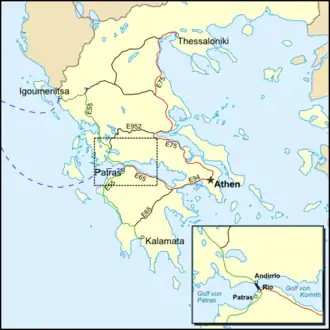 | Querung von | Golf von Korinth, Golf von Patras | |
