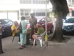 Carioca (Plural Cariocas) ist die Bezeichnung für die Einwohner Rio de Janeiros. Das Wort entstammt der Sprache der dort ehemals ansässigen Indigenen Tupi. Seine Bedeutung ist jedoch umstritten. Die wahrscheinlichste Herkunft kommt aus der Zusammensetzung zweier Tupi-Worte kara’iwa oder kari (weißer Mann) + oka (Haus) und bedeutet „Haus des weißen Mannes“.[12] Gemeint waren damit die weiß getünchten Häuser der Portugiesen.