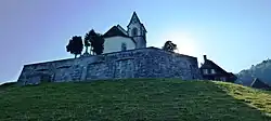 Das Frühmittelalter ist durch die Spuren einer der ältesten Kirchen des Kantons Zug belegt.[37] Unter der heutigen barocken Kirche St. Verena in Risch von 1680–1684 befinden sich die Fundamente eines wahrscheinlich bereits im 8. Jahrhundert errichteten Gotteshauses.[38] Ab 1000 tauchen die ersten Grundherrschaften sowie die ersten urkundlichen Erwähnungen von Orten wie Dersbach (1064), Gangolfswil (um 1150) und Risch (1159) auf.[39]