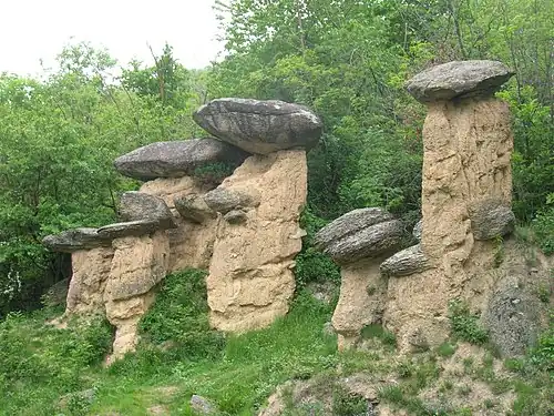 Das Gebiet dient dem Schutz der „Erosionssäulen“, „steinernen Pilze“ oder „Erdpyramiden“, die sich am Fuß des Monte San Bernardo erheben, und die im Piemontesischen ‚Puppen‘ oder ‚Hampelmänner‘ (ciciu) heißen. Sie wurden legendär als hundert römische Soldaten gedeutet, die einen Heiligen verfolgten, verflucht wurden und sich in Steine verwandelten. 479 dieser Hervorbringungen der Erosion wurden im Jahr 2000 auf einer Fläche von 25 ha gezählt.[3] Die meisten von ihnen sind nicht mehr als 2 m hoch, doch variiert ihre Höhe zwischen 50 cm und 10 m, ihr Durchmesser in Bodennähe zwischen etwa einem und sieben Metern. Der überaus harte „Hut“ kann bis zu 8 m Durchmesser aufweisen. Während dieser aus Gneis besteht, setzt sich der Fuß des „Pilzes“ aus 90 % Lehm und Sand sowie 10 % Ton zusammen, dazu kommen geringe Mengen von Quarz, Gneis, verbacken mit Silicium und Eisenoxid. Letzteres gibt den ciciu die charakteristische rötliche Farbe.