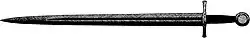 Ein typisches hochmittelalterliches Kampfschwert vom Typ XI–XII, welches zwischen 1100 und 1250 u. Z. als Reiter- und Schildkampfwaffe gebraucht wurde