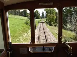 Allerdings wurde die maximal zulässige Personenzahl manchmal nicht unwesentlich überschritten,[10] auch Züge mit zehn Achsen kamen vor. Bergauf fungierte die Zahnradlokomotive dabei als Schiebelokomotive, bergab entsprechend als Bremslokomotive. Wurden ein Beiwagen und/oder Güterwagen bergwärts mitgeführt, musste zuerst der Triebwagen auf die talwärtige Seite des Zuges umsetzen, bevor die Lokomotive ankuppelte. Der Antrieb des Triebwagens, der ab 1913 stets bergseitig eingereiht war, war während der Fahrt auf dem Zahnstangenabschnitt jeweils abgeschaltet,[12] der Lyrabügel blieb jedoch am Fahrdraht.