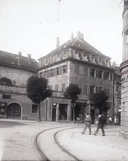Die Reste des terrassenartigen Anbaus des Gebäudes, er trug die Hausnummer 56b und zeitweise auch 58, wurden im Januar 1952 abgebrochen.[5] Heute befindet sich an der Stelle des Anwesens ein um 1953 nach Entwürfen von Julius Hoffmann erbauter viergeschossiger Neubau der Handels- und Gewerbebank (heute Baden-Württembergische Bank) aus Fränkischem Muschelkalk.[6]