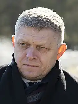 Am 15. Mai 2024 wurden auf Fico nach einer Kabinettssitzung im Kulturhaus in Handlová, etwa 150 Kilometer nordöstlich der Hauptstadt, fünf Schüsse abgefeuert, wovon ihn mindestens einer im Brustbereich traf. Fico wurde in ein Krankenhaus in Banská Bystrica gebracht und notoperiert.[27][28] Nach Angaben der Regierung schwebte Fico auch nach zwei Tagen und einer zweiten Operation noch immer in Lebensgefahr.[29][30] Am 19. Mai verkündete der stellvertretende Ministerpräsident Robert Kaliňák, dass Fico sich außer Lebensgefahr befinde, aber weiterhin intensivmedizinische Behandlung benötige.[31] Am 5. Juli 2024 trat Fico erstmals seit dem Attentat öffentlich auf. Der mutmaßliche Attentäter wurde wegen versuchten Mordes angeklagt.[32]