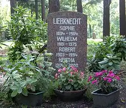 Nach seinem Tod im Oktober 1994 in Paris wurde seine Urne nach Berlin überführt und im Januar 1995 auf dem Zentralfriedhof Friedrichsfelde in der Gräberanlage „Pergolenweg“ zusammen mit seiner Frau Hertha, seinem Bruder Wilhelm und seiner Stiefmutter Sophie beigesetzt. In der benachbarten Gedenkstätte der Sozialisten sind sein Vater Karl Liebknecht und sein Großvater Wilhelm Liebknecht beerdigt.