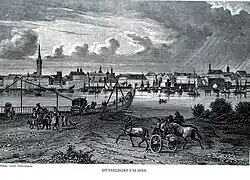 Schumanns nochmalige Bemühungen um den Posten des Leipziger Gewandhauskapellmeisters scheiterten, und bevor sein Vorhaben, Hofkapellmeister in Dresden zu werden, konkret werden und Erfolg haben konnte, erhielt er im Dezember 1849 das Angebot, die Nachfolge von Ferdinand Hiller als Städtischer Musikdirektor in Düsseldorf anzutreten.[119] Vertragspartner war seinerzeit der Musikverein (heute Städtischer Musikverein zu Düsseldorf). Die Schumanns zögerten zunächst, das ihnen vertraute Sachsen zu verlassen, aber am 1. September 1850 verließen sie Dresden Richtung Westen.