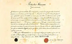 Im Juli 1839 versuchten Robert Schumann und Clara Wieck die hoffnungslos erscheinende Situation mit einer Klage vor Gericht zu beenden, die darauf gerichtet war, dass entweder Claras Vater der Ehe zustimmen oder von Amts wegen eine Einwilligung herbeigeführt werden sollte.[82] Um seine Position im Prozess gegen Wieck zu verbessern, bemühte sich Schumann erfolgreich um die „Doctorschaft“ der Universität Jena. Am 24. Februar 1840 verlieh ihm die philosophische Fakultät die Doktorwürde in absentia. Dazu hatte Schumann einen handgeschriebenen Lebenslauf,[83] Sittenzeugnisse und mehrere von ihm verfasste, als „Promotionsschrift“ gewertete Aufsätze eingereicht.[84]