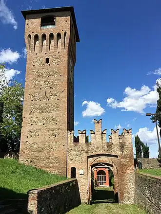 Der älteste, erhaltene Kern zeigt zum Innenhof der heutigen Burg und besteht aus zwei Gebäuden, die vollkommen aus Mauerziegeln errichtet sind: Ein Turm und ein benachbartes Gebäude, beide vom Ende des 13. Jahrhunderts. Charakteristisch für die bologneser Gotik sind das Tor mit zwei Spitzbögen und die Kreuzgewölbedecken.