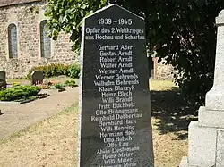 - In Rochau steht ein Denkmal für die Gefallenen des Ersten und Zweiten Weltkrieges, dessen mittlerer Teil aus Granitblöcken in Form eines Tempels mit eingelassener Tafel besteht. Er ist flankiert von zwei schwarzen Granitsäulen.[34]