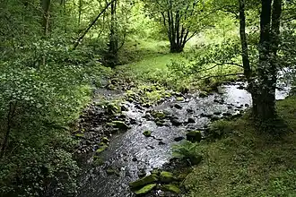 ![]() Das Rock Water (rechts) am Zusammenfluss mit dem Hurstwood Brook | ||