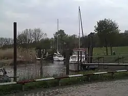 Das Dielenschiff „Hanni“ liegt im Abser Yachthafen. Es ist ein originalgetreuer Nachbau der historischen Dielenschiffe, die früher die Bauernhöfe in der gesamten Wesermarsch mit Waren belieferten. Dadurch, dass diese Schiffe nur einen geringen Tiefgang haben und der Segelmast umgeklappt werden kann, konnten sie leicht die Siele befahren.