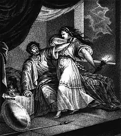 Rogneda und Wladimir, Kupferstich von Boris Tschorikow, 1836