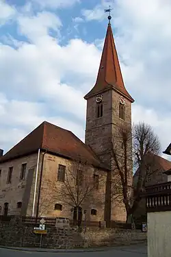 - Die Kirche St. Bartholomäus wurde 1487 erbaut. Bauliche Veränderungen stammen aus den Jahren 1692 und 1869 (neues Langhaus). Von der spätgotischen Ausstattung ist noch das Sakramentshäuschen (1487) vorhanden. Es wurde 1913 wie der Altar aus dem 18. Jahrhundert von einer späteren Übermalung befreit. Das Altarbild schuf 1869 Friedrich Kaulbach.