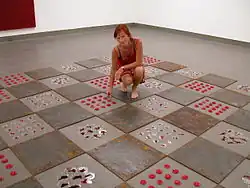 Ihre Arbeiten sind nie beendet, es sind Phasen des Durchgangs, im Moment der Gegenwart fixiert. Sie werden ständig verändert, erweitert, anderen Situation neu angepasst. Durch diese Vorläufigkeit, ständige Unfertigkeit vermeidet sie jede dogmatische Aussage. Das Material die Farbe sind die Spielsteine mit denen sie selbst hantiert aber auch den Betrachter suggeriert, assoziativ mit dem vorliegenden Material – der Bodeninstallation – zu phantasieren, um so zu begreifen. Kunst als Mittel der Erkenntnis, als Weg der Bewusstwerdung, ohne das Korsett eines wissenschaftlichen Sets.[3]