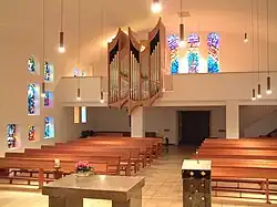 1954 Düsseldorf-Golzheim St. Albertus Magnus II/P 19 1981 Umbau und neues Gehäuse; 2018 durch Neubau von Rieger ersetzt