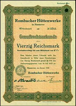 Die in Deutschland ohne das lothringische Hüttenwerk weiter unter dem Namen Rombacher Hüttenwerke firmierende Firma konnte nach einer finanziellen Entschädigung durch das Deutsche Reich umfangreich investieren.
