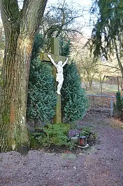 Zwischen dem Königsteiner Friedhof und der Josefskapelle befindet sich ein denkmalgeschütztes Wegekreuz (⊙) aus rotem Mainsandstein. Angebracht ist ein sich hell abhebender Christus. Der Sockel ist jüngeren Datums und trägt die Inschrift nach Joh. 11, 25: „Ich bin die Auferstehung und das Leben. Wer an mich glaubt, wird leben, auch wenn er stirbt“.