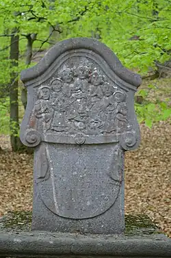 Pfarrer Kraft errichtete an der Stelle der einstigen Kapelle ein hölzernes Kreuz. 1754 ließ Rektor Johann Eschborn im Auftrag seines Schwiegervaters Georg Burckharth zwei Votivsteine aufstellen. Diese zeigen die 14 Nothelfer. Anlass war ein verhinderter Unfall, nachdem Holzarbeiter die 14 Nothelfer angerufen hatten. 1776 ließen die Eheleute Georg und Katarina Kreiner das hölzerne Kreuz durch das heutige, steinerne Kreuz ersetzen.
