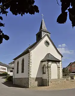 - Wegekapelle (Lage→): Modernisierte, in Privatbesitz befindliche Kapelle wenige Meter nordwestlich der Kirche, Baujahr um 1900