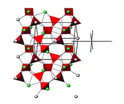 | Gitterparameter | a = 8,183(3) Å; b = 9,247(3) Å; c = 8,651(2) Å β = 109,74(2)°[4] |