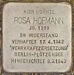 - ↑ Gert Kerschbaumer: Hofmann, Rosa. In: Stolpersteine Salzburg. Abgerufen am 24. Januar 2025 (deutsch).