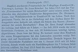 1923 übersiedelte sie zurück nach Frankfurt/Main und unterrichtete wieder als nebenamtliche Dozentin an ihrer ehemaligen Wohlfahrtsschule u. a. Sozial- und Wirtschaftspolitik sowie Staatsbürgerkunde. Seinerzeit dozierten (hauptberuflich, nebenamtlich) dort bedeutende Frauen und Männer der Wohlfahrtspflege wie Christian Jasper Klumker, Wilhelm Polligkeit, die Psychologin Elisabeth Schmitt, die Kinder- und Stadtärztin Charlotte Landé, Marie Bernays, Ella Schwarz und Hermine Albers.[12]