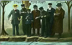 Am Nachmittag des Neujahrstags (oder, wenn Rosch ha Schana auf einen Schabbat fällt, am Folgetag) gibt es den Taschlich-Brauch: Vor Sonnenuntergang begibt man sich an ein Flussufer, einen Strand oder (zum Beispiel in Jerusalem) in die Nähe einer Quelle. Nach Lesung einiger Verse aus dem Buch Micha (7,18–20) folgt ein Gebet zur Vergebung von Sünden. Quasi noch am Menschen haftende Sünden des letzten Jahres werden sodann symbolisch durch Ausleeren der Taschen und Ausbürsten der Kleidung abgeschüttelt.[23]