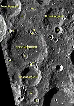 Rosenberger ist ein Einschlagkrater im Süden der Mondvorderseite, südöstlich des Kraters Vlacq und westlich von Biela.