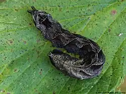 Die Raupen werden ca. 35 Millimeter lang. Sie sind rotbraun bis lilabraun und haben auf den 2., 5. bis 9. und 11. Segmenten Höcker auf dem Rücken. Auf dem Rücken ist auch eine helle, dreieckige Zeichnung zu erkennen. Junge Raupen sind graubraun und haben auf der Oberseite der vorderen Segmente einen großen weißen Fleck.