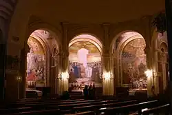 Jede Kapelle zeigt ein großes Mosaik mit dem Inhalt oder Thema des jeweiligen Geheimnisses und eine lateinische Inschrift. Die meisten Mosaike entstanden um 1900. Jede Seitenkapelle birgt einen Altar mit sechs Kerzen. Ein zentrales Mosaik zeigt die Darstellung der Gottesmutter Maria mit ausgestreckten Armen, Engelsköpfen und der Überschrift „Par Marie à Jésus“ (dt. „durch Maria zu Jesus“). Die Abbildung ist Bernadette Soubirous Beschreibung der Marienerscheinung von Lourdes nachempfunden.