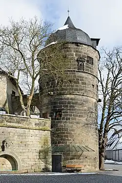 Mit der Errichtung des heutigen Rosenturms wurde im Jahr 1515 begonnen, abgeschlossen wurden die Arbeiten vermutlich 1533. In den Jahren 1579/80 wurde dem Turm ein weiteres Obergeschoss aufgesetzt. Die Pläne hierfür stammen von Baumeister Daniel Engelhardt, der in Kronach unter anderem am Ausbau der oberhalb der Stadt gelegenen Festung Rosenberg beteiligt war. Am zweiten, mit mehreren T-förmigen Schießscharten versehenen Obergeschoss des Turmes befindet sich eine Bauinschrift mit den Jahreszahlen 1579 und 1580, direkt darüber ist ein Sandsteinrelief mit dem Wappen des Bamberger Fürstbischofs Johann Georg I. Zobel von Giebelstadt angebracht.