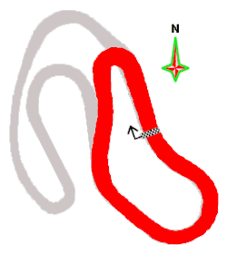 Die Strecke befand sich im Becken einer ehemaligen Kiesgrube, weshalb alle Kurven an der äußeren Seite eine Überhöhung von mindestens 5 Grad Neigung besaßen. Die größte Neigung wies die schnelle Pirellikurve vor Start und Ziel auf, welche mit einem Winkel von bis zu 11 Grad als Steilkurve ausgeführt war.