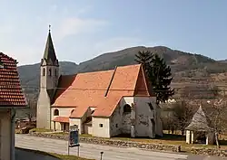 - Filialkirche hl. Lorenz in St. Lorenz: Eine romanische Chorquadratkirche, die an die Südseite eines römischen Burgus angebaut wurde.