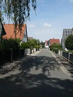 Westlich der 1973 stillgelegten Eisenbahnstrecke hatten die US-Truppen Wohnhäuser für ihre Armeeangehörigen errichtet. An der Himmelkronstraße entstanden 1993 einfache Satteldachhäuser für Spätaussiedler. Ein Abenteuerspielplatz mit Spielhaus existiert auf dem Grundstück Meranierring 55.[6]