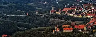 - ↑ Dazu und im Weiteren: Rothenburg ob der Tauber als Landschaftsgarten, eine Annäherung aus britisch-deutscher Perspektive. In: ARX. Burgen und Schlösser in Bayern, Österreich und Südtirol. herausgegeben vom Südtiroler Burgeninstitut, 1/2010, S. 37–46.