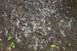 Rupfung eines 3–4 Wochen alten Rotmilans, vermutlich durch einen Habicht