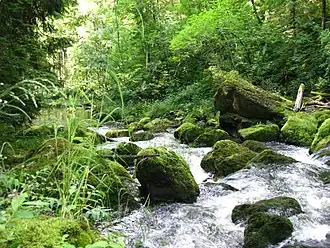 Quelle Ausfluss des Schwarzenberger Weihers nahe der Wasenmühle von Oy-Mittelberg