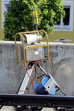 - ↑ Geben von Rottenwarnsignalen durch periodisches Absenken der Lichtstärke der Baustellenbeleuchtung von der Eisenbahn-Signalordnung (ESO) abweichende Signale mit vorübergehender Gültigkeit. In: Amtsblatt der Bundesbahndirektion Nürnberg. Nr. 69, 3. November 1972, ZDB-ID 563443-X, S. 458 f. (verfügbar auf Commons).