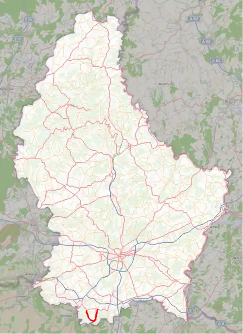 - ↑ Legilux: Königlich-Großherzoglicher Beschluß v. 20. September 1865, durch welchen der Weg von Rodingen nach Athus zur Staatsstraße erhoben wird. Abgerufen am 30. September 2023.